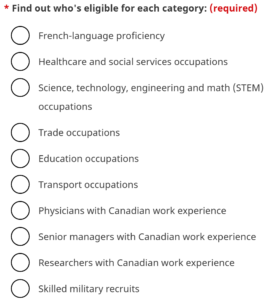 - 與其他「快速通道」類別一樣,仍然要同時符合其中一個移民類別(例如 FSWP 或 CEC)的基本要求。