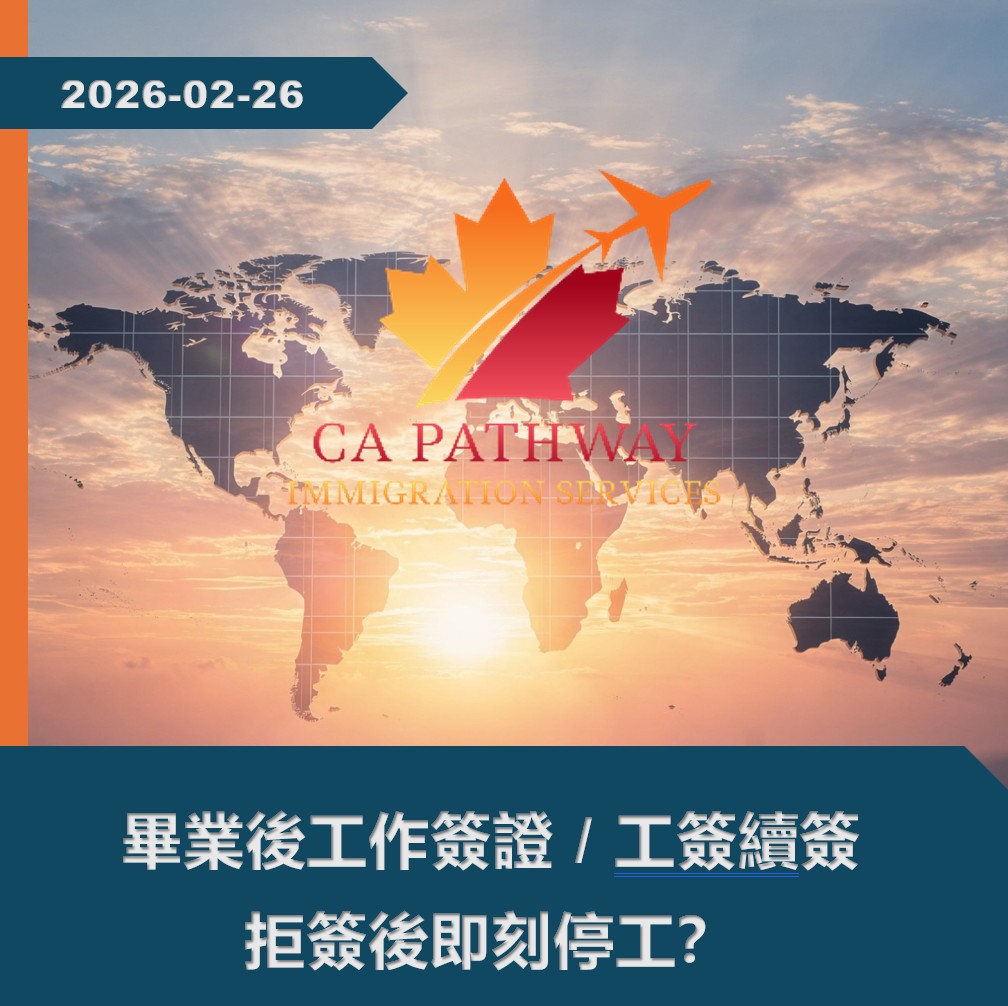 總結而言,畢業後工簽或工簽續簽被拒絕,首要任務係「即時停工」嚴守規矩,其次係冷靜分析拒簽原因並啟動後備方案。若閣下正面對此困境,不知如何妥善處理身份轉換、工簽重新申請或後續移民規劃,誠邀聯絡 CA Pathway Immigration Services。我們的專業持牌移民顧問將為你提供度身訂造的專業移民方案,確保身份合法性、提升申請成功率,助你穩妥留加,移民之路穩陣前行。