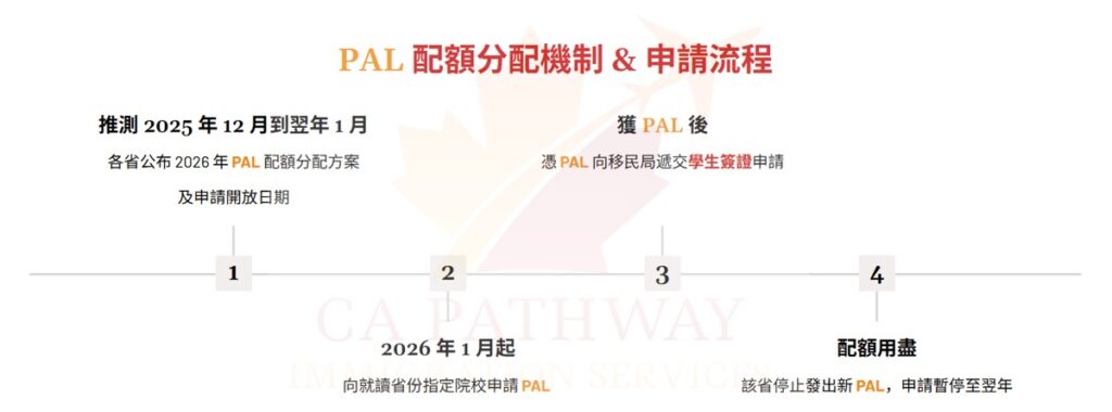 省級認證信(PAL 或 TAL)制度授予各省份自主管理留學生數量之權限。申請人須先取得目標省份發出之省級認證信(PAL 或 TAL),方可向聯邦政府遞交學生簽證申請。鑑於各省配額有限且申請開放時段各異,強烈建議密切關注目標省份之官方公佈資訊。